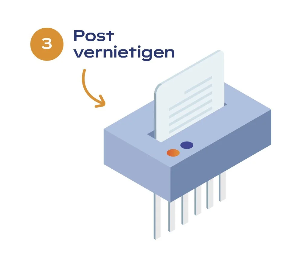 Documenten worden veilig verwerkt en opgeslagen. Fysieke post wordt gecertificeerd afgevoerd en vernietigd.
